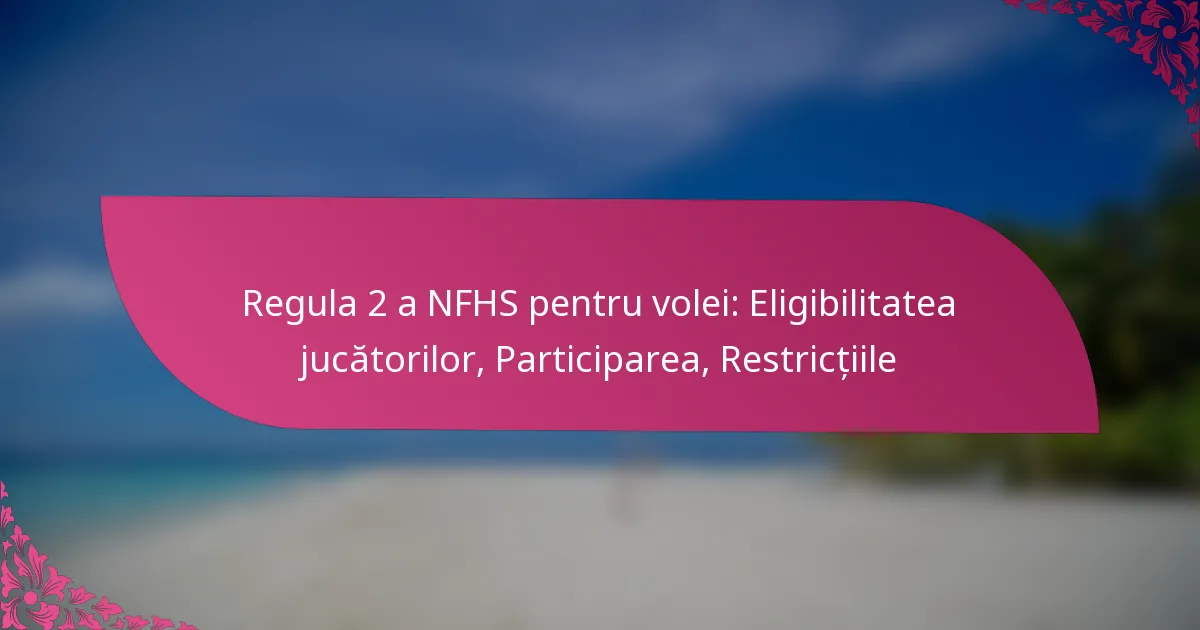 Regulile de volei NFHS stabilesc criterii clare pentru eligibilitatea și participarea jucătorilor, concentrându-se pe vârstă, nivelul de clasă, standardele academice, rezidență și implicațiile transferului. Aceste orientări sunt esențiale pentru menținerea unei competiții corecte și a siguranței sportivilor, deoarece includ și restricții legate de experiența anterioară și sănătate. Înțelegerea acestor reguli este vitală pentru jucători, antrenori și școli pentru a asigura conformitatea și a spori oportunitățile de participare.